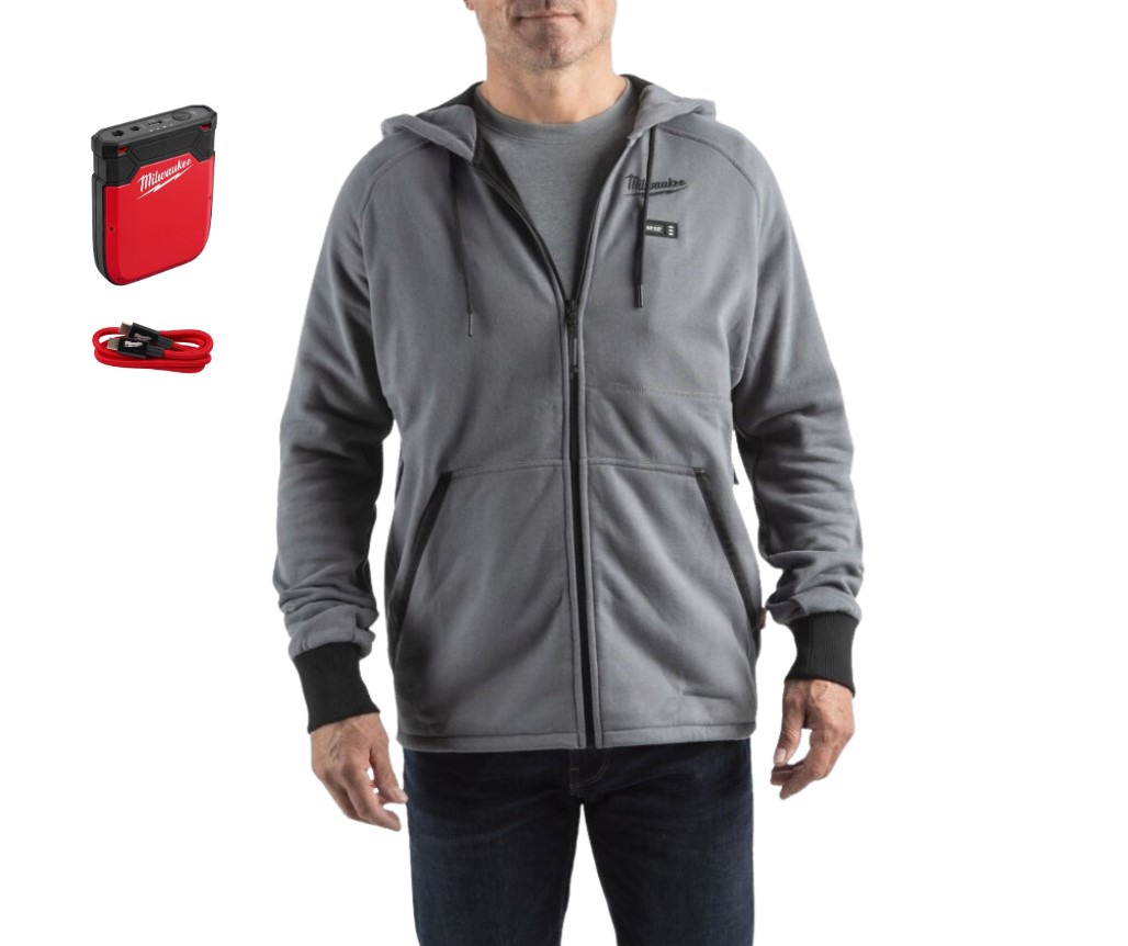 MILWAUKEE MĘSKA SZARA BLUZA PODGRZEWANA KAPTUR M12 HHGREY4 + IRPSU3 PŁASKI AKUMULATOR wyprzedaż